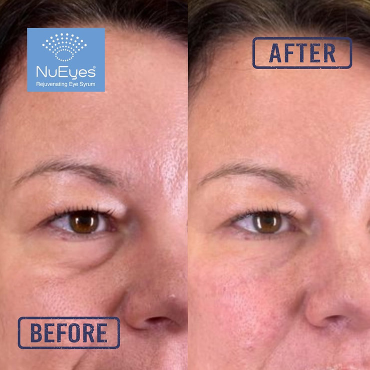 With NuEyes from NuRejuv you see eye bags, lines, and wrinkles remarkably reduce or disappear in as little as 2 minutes. Using the smallest amount of the NuEyes Serum you simply apply by patting/dabbing it onto the area of concern (don’t wipe) and let it dry. That’s it! Fanning the area will speed up the drying process and results, which means you will see faster results (we found using a hair dryer on a low cool setting works great). The results last until it is washed off (in normal conditions).